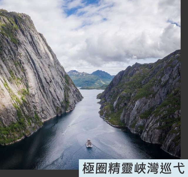 擁有狹窄峽口與兩側高聳山壁的精靈峽灣,景色壯麗如畫。特別安排搭乘★混和雙動力遊船,穿梭於壯闊峽灣間,近距離欣賞高峻峽谷與湛藍海水交織的美麗景緻。