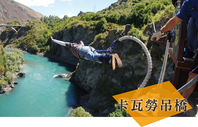 吊橋懸跨在懸崖峭壁之間,俯瞰波濤洶湧的卡瓦勞河,單就橋上觀看他人一躍而下的英姿。