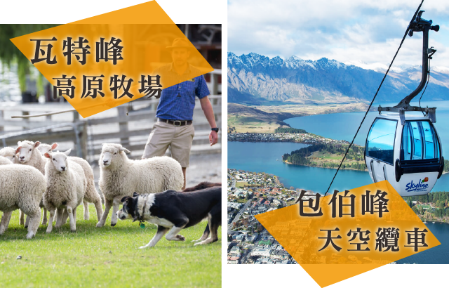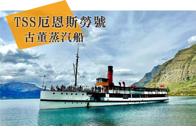 乘坐TSS厄恩斯勞號古董蒸汽船飽覽湖光山色,抵達瓦特峰農場享用BBQ與欣賞農場秀(牧羊犬趕羊),隔日搭乘包伯峰天空纜車,上山欣賞風景如畫的景緻邊享用豐盛的BUFFET大餐。