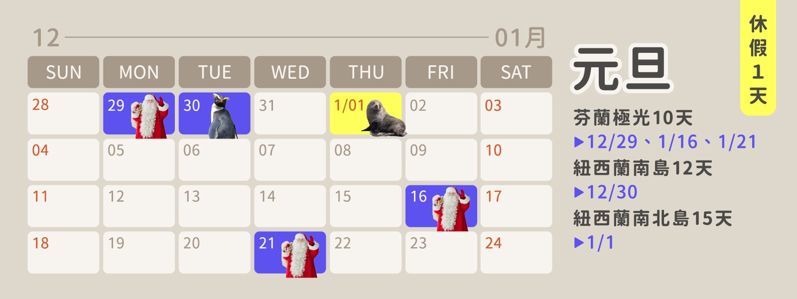 出發日期:12/29 (額滿)、1/16(額滿)、1/21 (額滿)