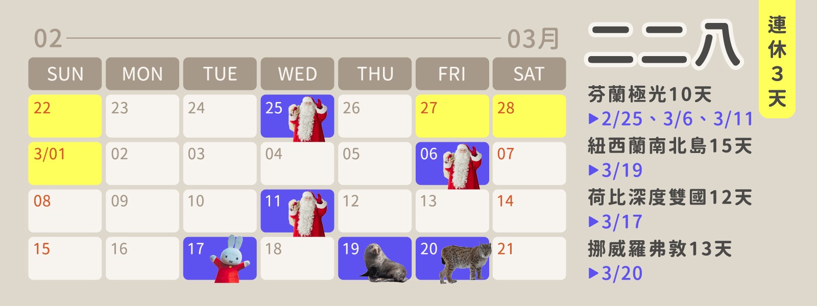 ▍2-3月|228 連續假期