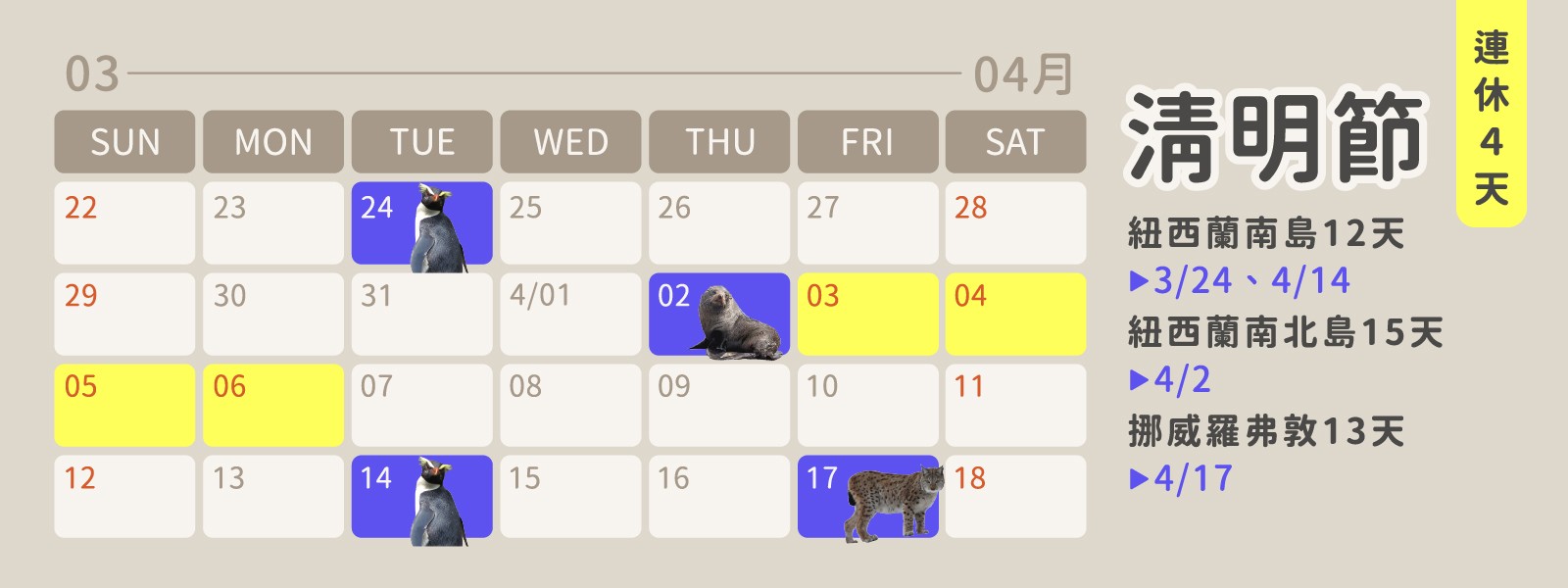 ▍3-4月| 清明連假