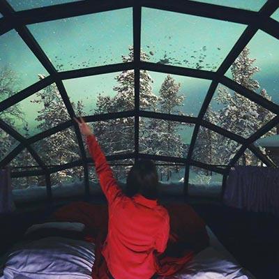 晚上入住位於伊納里的極光玻璃蘑菇木屋,樣子圓滾滾的小巧可愛,真的好像一顆顆雪地裡生長出來的小蘑菇。更...