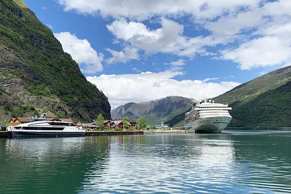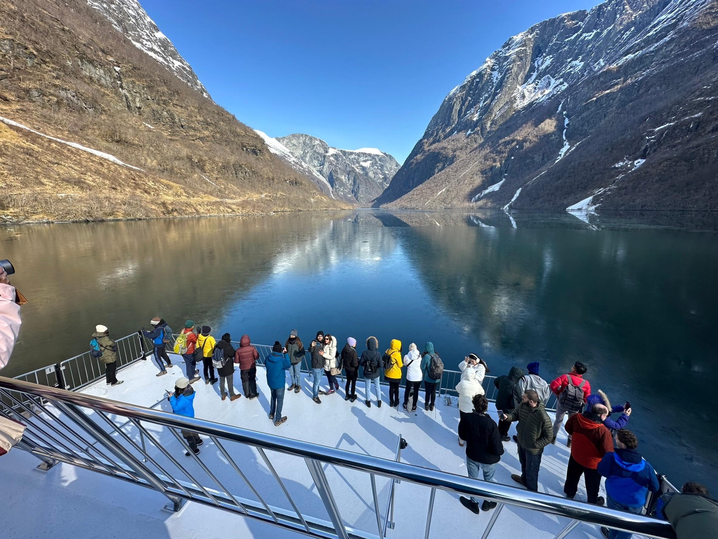 搭上遊艇開始欣賞美麗的松恩峽灣。一路上美景不間斷,尤其陽光灑落下來,彷彿置身在明信片中.......