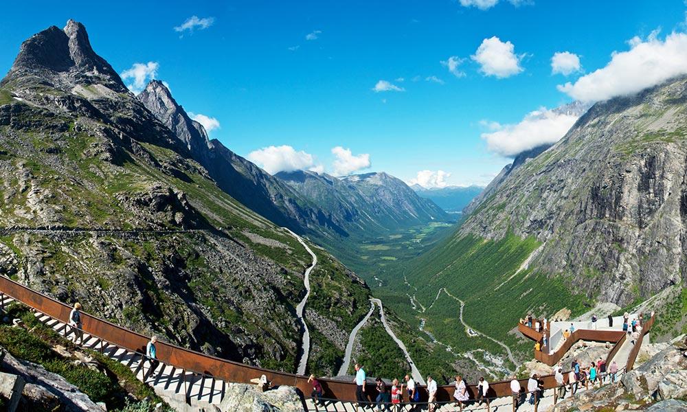 蜿蜒曲折的景觀公路:「老鷹公路」和「精靈之路」,沿著迂迴曲折盤旋於陡峭的山壁前進,之字形的轉折公路教人大開眼界。英國旅行家對此段路程寫下絕妙註解:「峭壁森嚴、灰色岩石的尖銳顯然像針一樣細,浮現出最愉悅最美麗的勝景,被周遭白雪覆蓋的山巒屏障著每一道氣流,同時又有一條最迷人的溪河流經山谷……」。