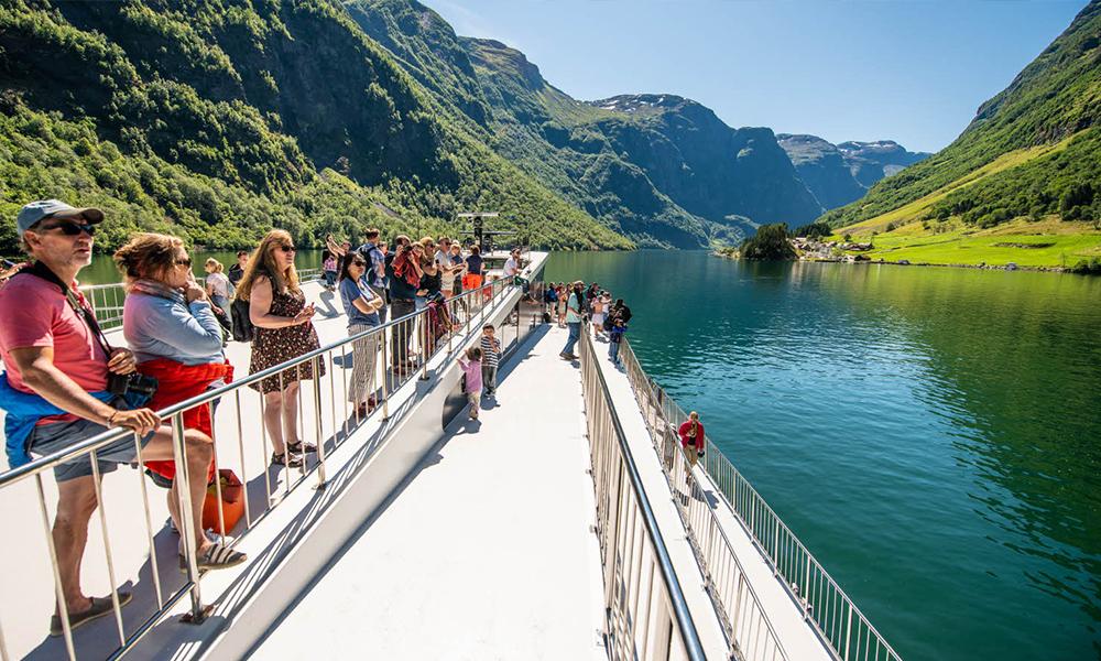 為環保永續盡一份心力,特別安排★全電動化的峽灣遊船,集合無噪音、零碳排、零汙染等眾多優點,在不破壞自然的情況下,航行在挪威峽灣間。大面積全景窗讓您在船艙內欣賞壯麗景致,船體獨特的Z字型走道設計,靈感來自峽灣山間蜿蜒小徑,讓您可以隨心所欲在船艙內外自由活動。