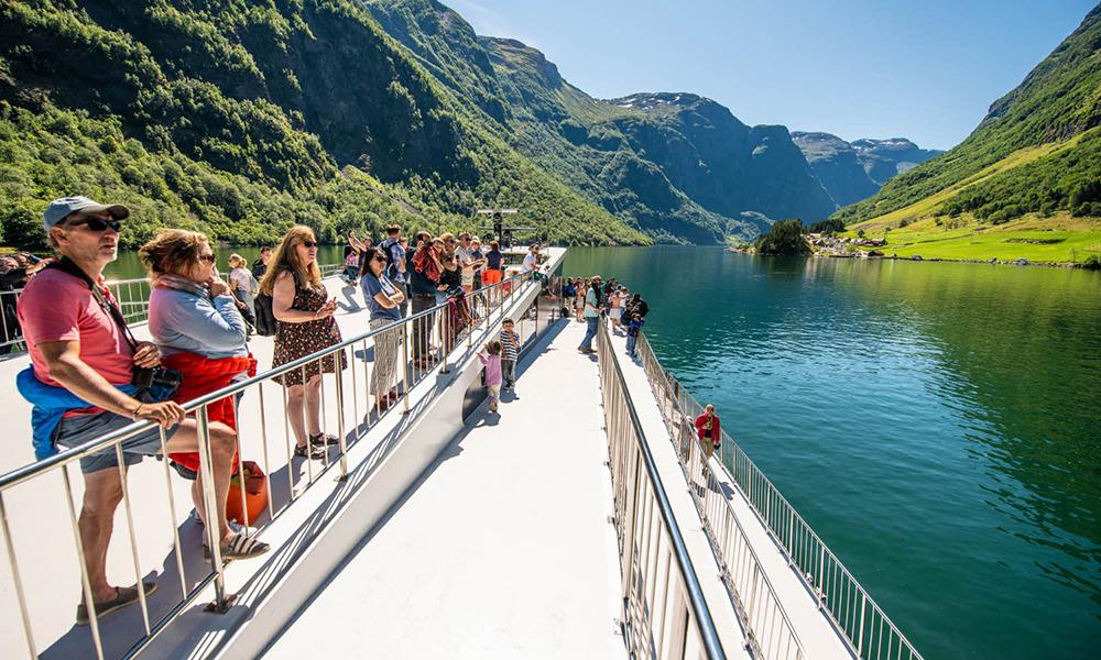 為環保永續盡一份心力,特別安排★全電動化的峽灣遊船,集合無噪音、零碳排、零汙染等眾多優點,在不破壞自然的情況下,航行在挪威峽灣間。大面積全景窗讓您在船艙內欣賞壯麗景致,船體獨特的Z字型走道設計,靈感來自峽灣山間蜿蜒小徑,讓您可以隨心所欲在船艙內外自由活動。