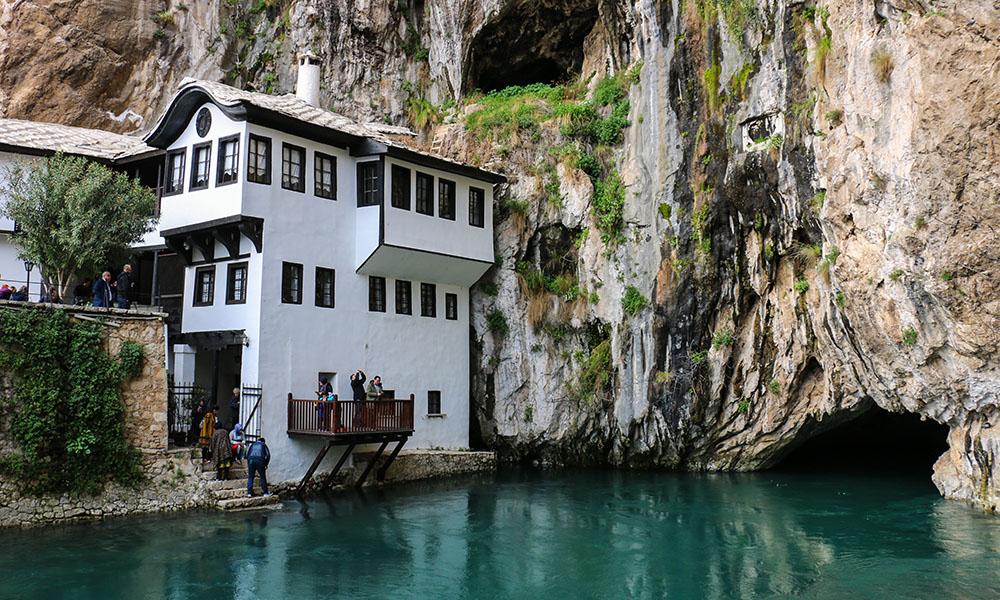 今日告別美麗的海岸線,進入波士尼亞山區。特別安排私房景點「伯樂居」,位於布納河源頭的清幽小鎮,水源來自地底洞穴的天然湧泉,洞窟旁沿峭壁而建的★苦行僧修道院,是近500年歷史的回教修道院,鄂圖曼式的建築風格,與大自然的鬼斧神工相映成趣。