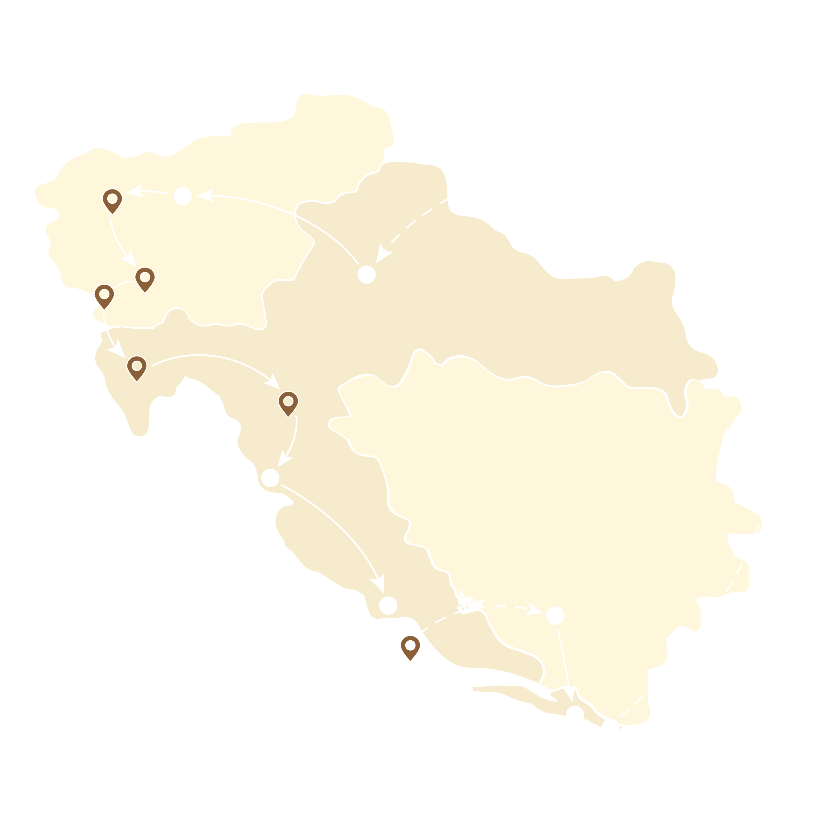 普列維切國家公園 - (115km/1.5hr) - 札達爾 - (159km/2hr) - 斯普萊特